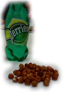 The other half of the filbert/hazel nuts and 20 oz. bottle of Perrier Citron mineral water.